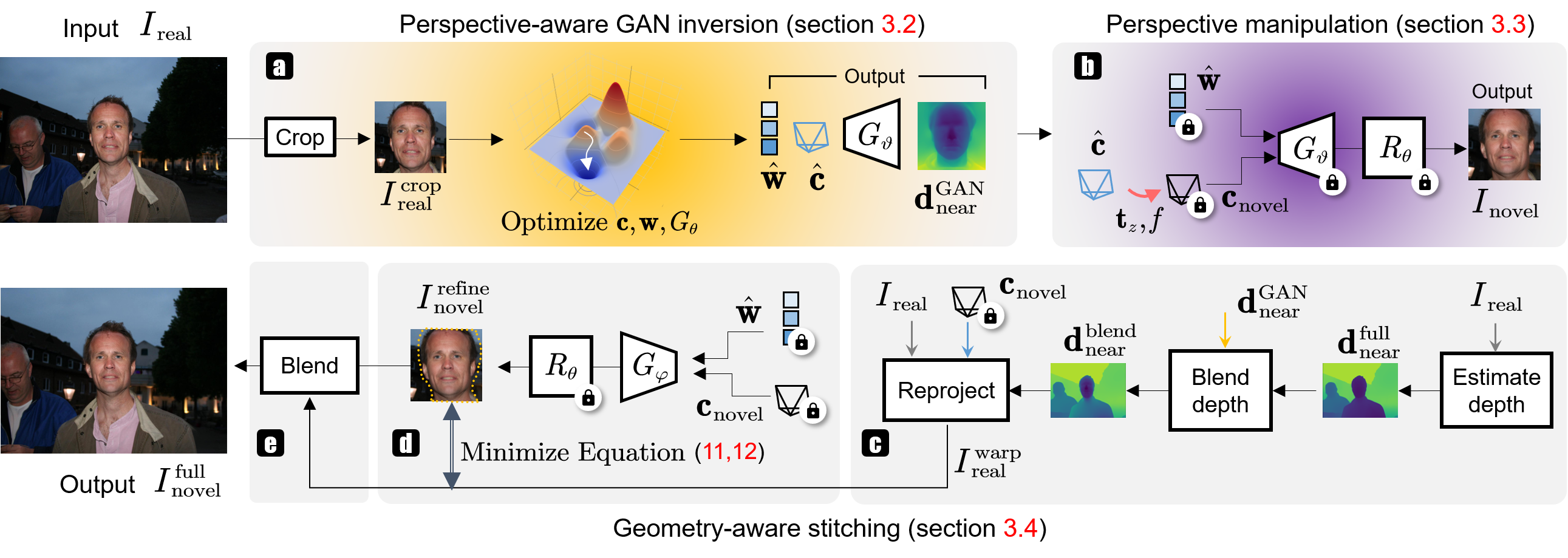Ablation study of our proposed perspective-aware 3D GAN inversion