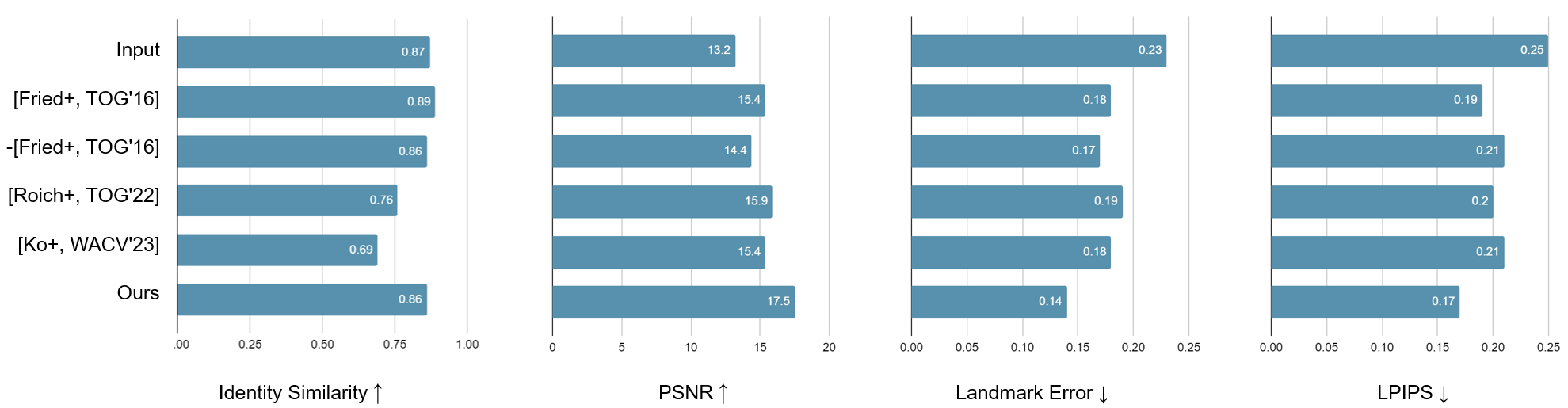 We conduct comparisons on CMDP. Results of [Fried+, TOG'16] is borrowed from their demo. -[Fried+, TOG'16] denotes our re-implementation of [Fried+, TOG'16].