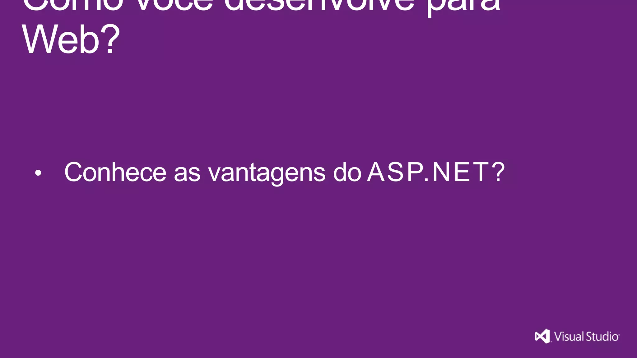 O documento discute o padrão MVC no desenvolvimento web com ASP.NET, destacando suas vantagens como separação de responsabilidades e testabilidade. Ele inclui exemplos de código para ilustrar a estrutura de Model, View e Controller. Por fim, menciona os requisitos necessários para começar a utilização do ASP.NET e Visual Studio 2013.