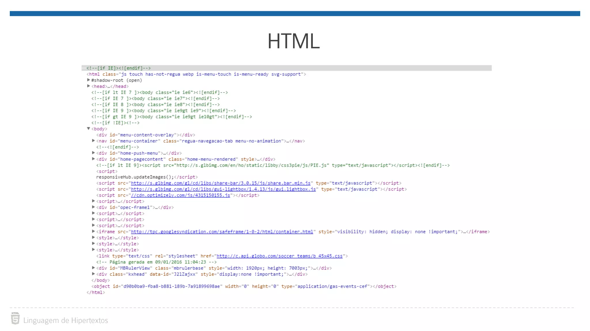 O documento discute os protocolos HTTP e FTP, métodos de requisição e resposta HTTP, elementos básicos de HTML como tags, atributos e estruturação de páginas. Também apresenta exemplos de tags HTML comuns e explica a organização de arquivos em projetos web.