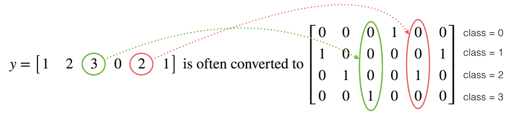 In deep learning, we will have a y vector with numbers ranging from 0 to C-1, where C is the number of classes. If C is, for example, 4, then you might have the following y vector, which you will need to convert as follows: