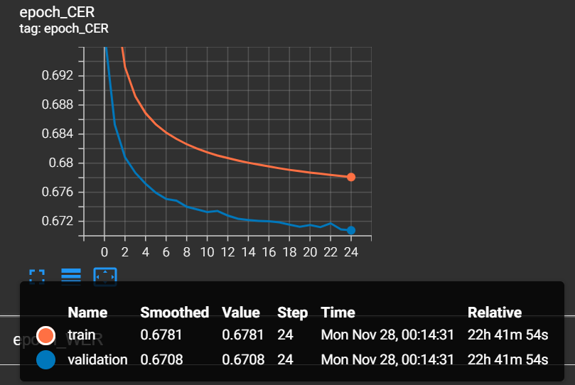 Because our dataset is huge, most of the things it learns in its first epoch, so when it finishes the first training epoch, our CER will give us pretty nice results: