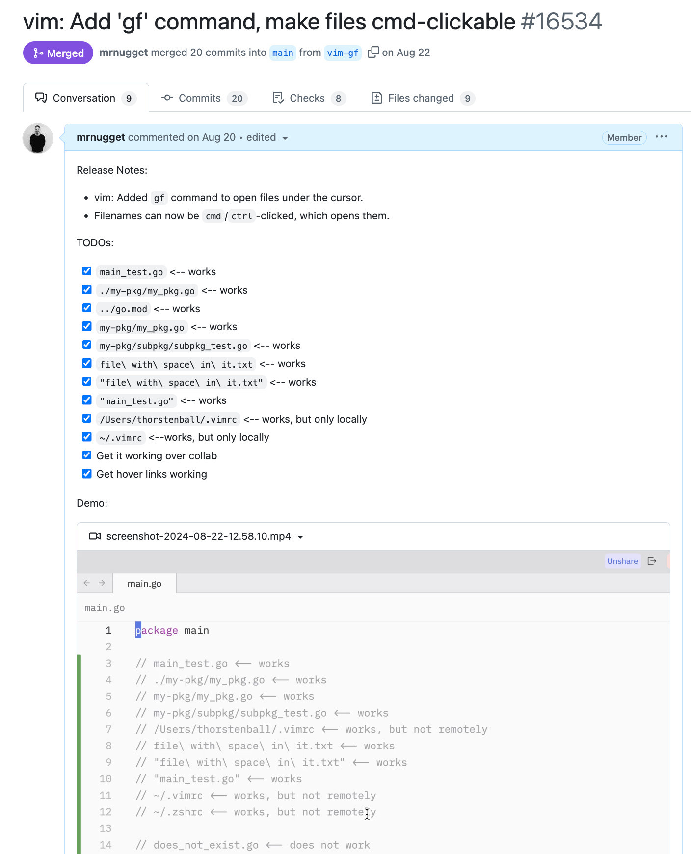 If possible I try to have a demo video in the PR, or a screenshot. A screenshot is worth a thousand words and ten thousand links to other tickets. A screenshot is proof. Proof that it actually fixes what you said it would fix, proof that you actually ran the code. It also takes far less time than people usually think it does. Here’s an example: