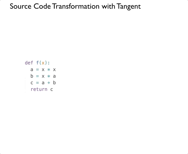 As a result, you can finally read your automatic derivative code just like the rest of your program. Tangent is useful to researchers and students who not only want to write their models in Python, but also read and debug automatically-generated derivative code without sacrificing speed and flexibility.