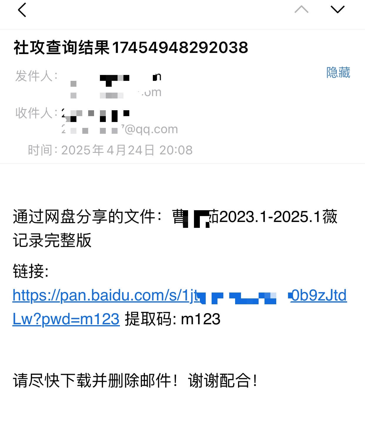 由于数据太大,只能通过百度网盘分享的形式发送到下单的指定邮箱,先转存到自己网盘再进行下载或在线预览。