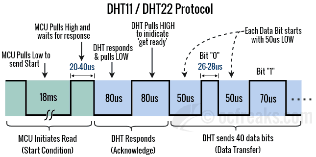 - If the sensor keeps the line high for 26-28 microseconds, it represents a '0' bit.