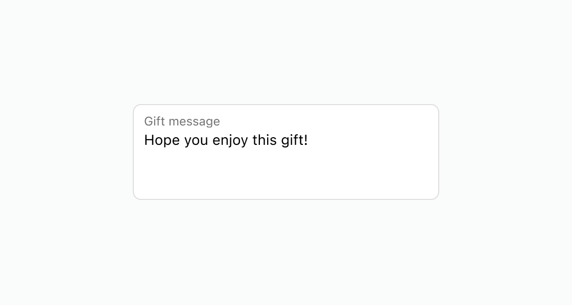 <s-text-area label="Gift message" value="Hope you enjoy this gift!" rows={3} ></s-text-area>