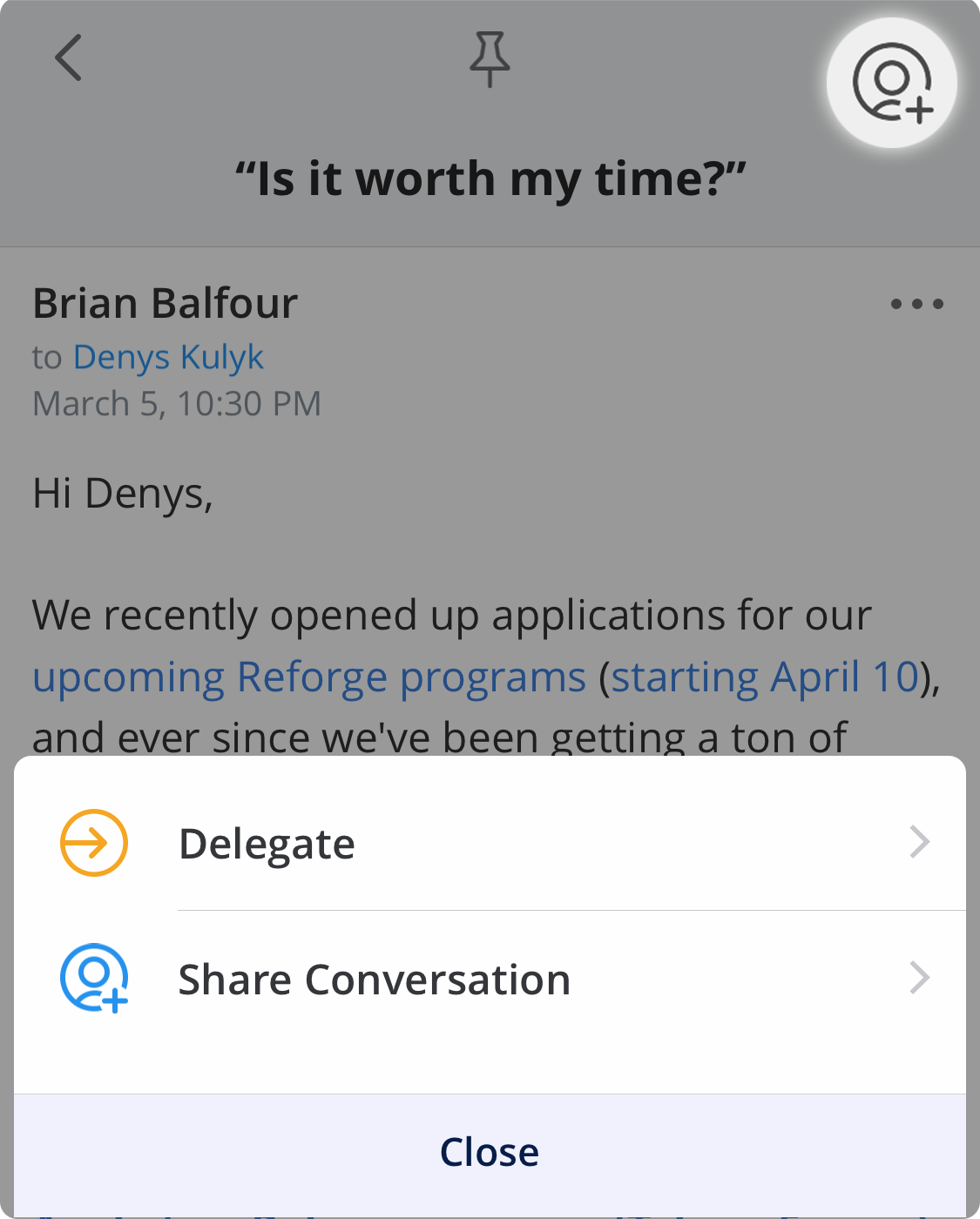 - Your teammate will receive an invitation email and will need to install Spark to work with delegated messages.