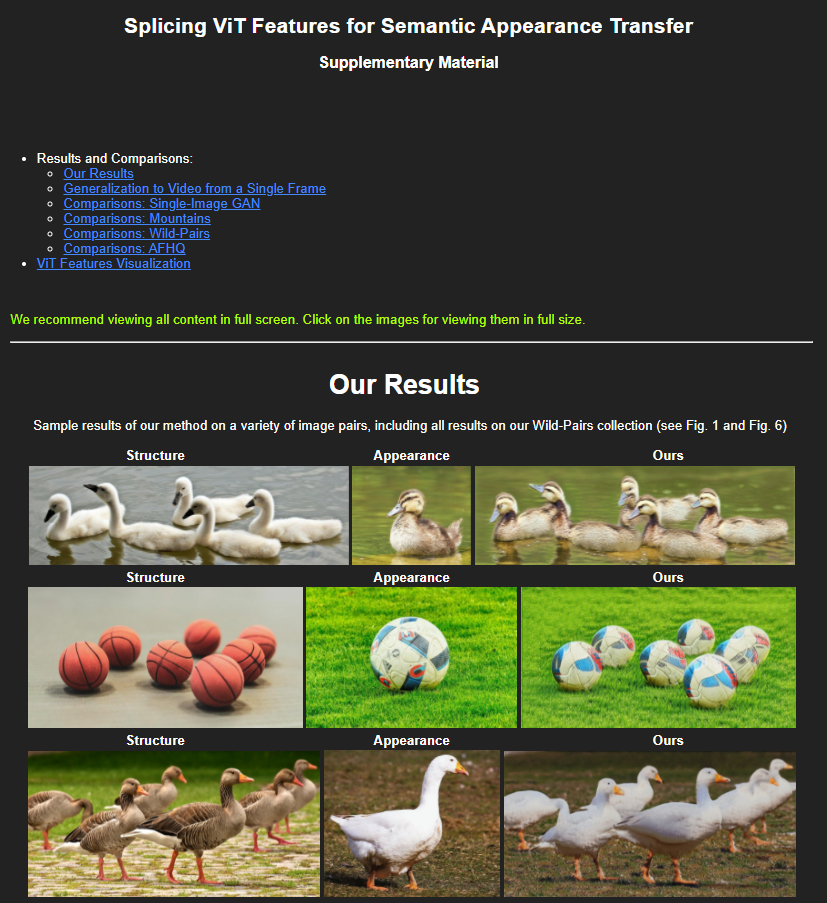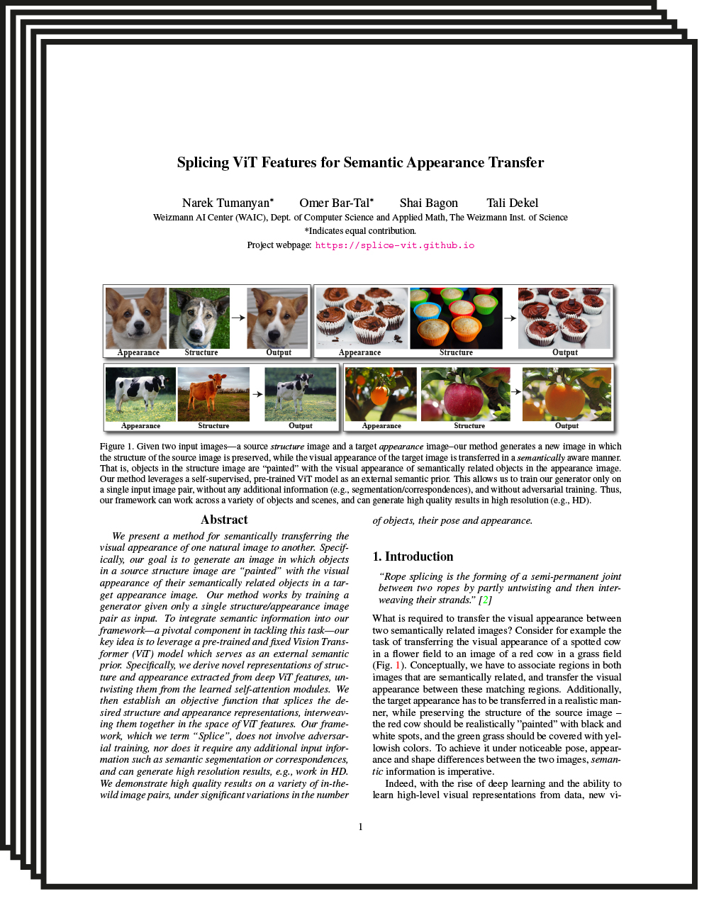 ![]() | Splicing ViT Features for Semantic Appearance Transfer |