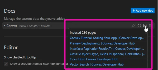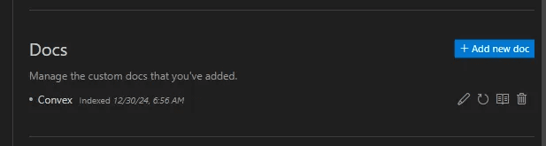 If you click “Add new doc” then choose the root of the Convex docs then Cursor will then go ahead and index all the sub-pages from the Convex docs.