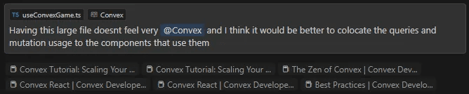 As mentioned in the section above you can “fine tune” on the latest Convex best practices by referencing the docs. You do this by adding a doc in the Cursor Settings called “Convex” then in your prompt type “@Convex” this then allows the agent to run a vector search against the Convex docs.