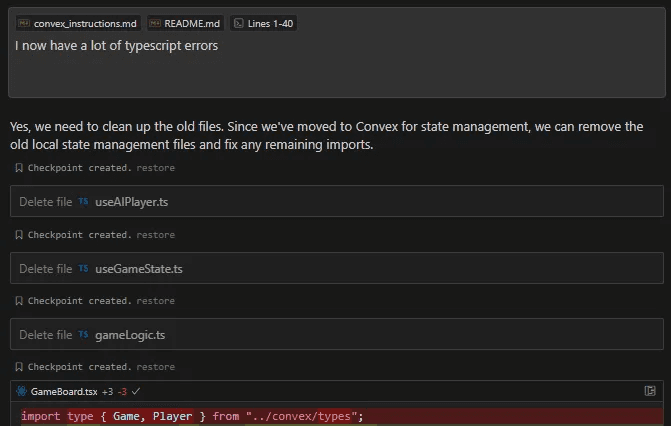 I suspect this file would need to be updated over time as you work on different projects and encounter other “silly” Convex mistakes from the agent but if you are interested in a good starting point this is the one I found effective for this project: https://github.com/get-convex/tic-tac-convex/blob/98ade9998b0845816e8511abf24b2ba08dacee29/instructions/convex_instructions.md