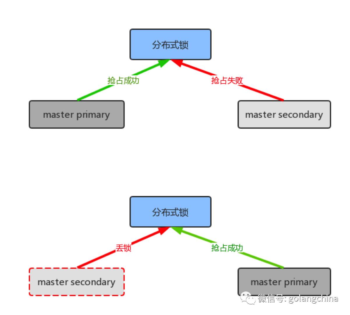 党合萱:现在我们是通过抢锁的方式,同一时间只有一个master,如果出现问题,就立马自杀,进入抢锁的逻辑,所以不会出现双master的情况。