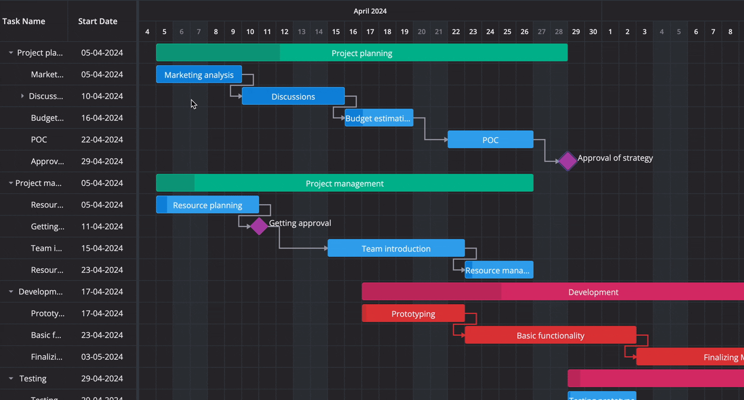 With an optimized rendering engine and dynamic loading, SVAR React Gantt handles large datasets smoothly, delivering consistent performance even with complex timelines and thousands of tasks - see the demo with 10k tasks.