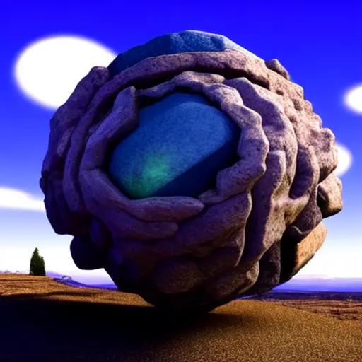 prompt = "A boulder with gemstones falling down a hill" depth2img(prompt, img)[0]