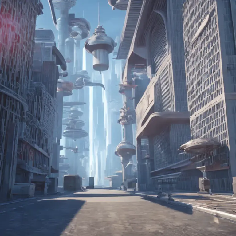 prompt = "A futuristic city on the edge of space, a robotic bionic singularity portal, sci fi, utopian, tim hildebrandt, wayne barlowe, bruce pennington, donato giancola, larry elmore" depth2img(prompt, img)[0]