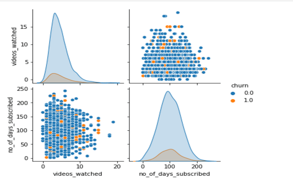 selected_diagnotic(data, class_col='churn', cols_to_eval=['videos_watched', 'no_of_days_subscribed'])
