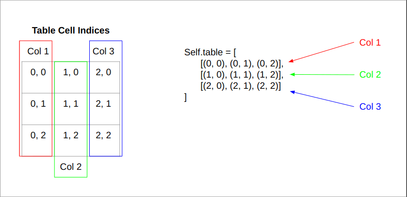 while they are empty). This table we're drawing is for representation of that table where we add lines that represent the rows, columns, and cells of the table. Below the __init__()