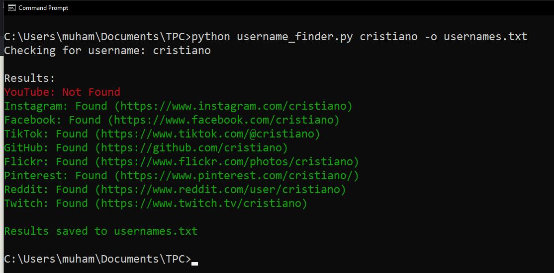 $ python username_finder.py cristiano -o usernames.txt