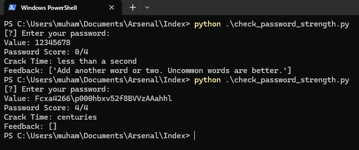 If you're ever in a situation where you don't have access to running this program immediately, you can use this password strength checker tool to check the strength of your password quickly. I built the tool. You don't have to worry about privacy or data collection.