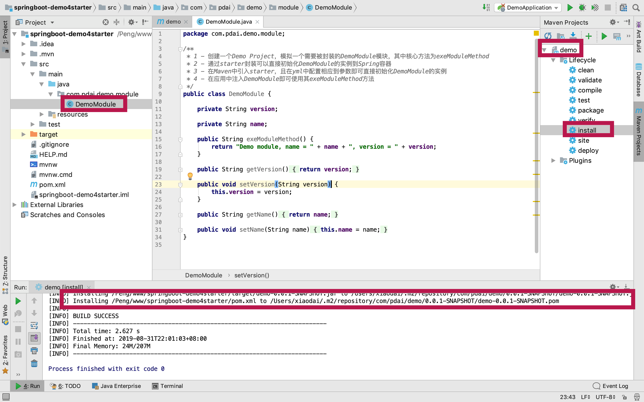 - 2 - 通过starter封装可以直接初始化DemoModule的实例到Spring容器