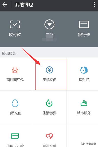 4、第四步,进入我的钱包页面后,点击【手机充值】;