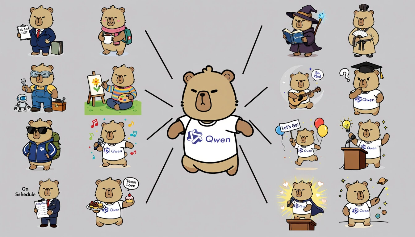 Qwen-VL learns and analyzes objects and texts in images and creates new content based on its learning. For example, it can recognize the woman and the dog in the picture and their gestures (high five).