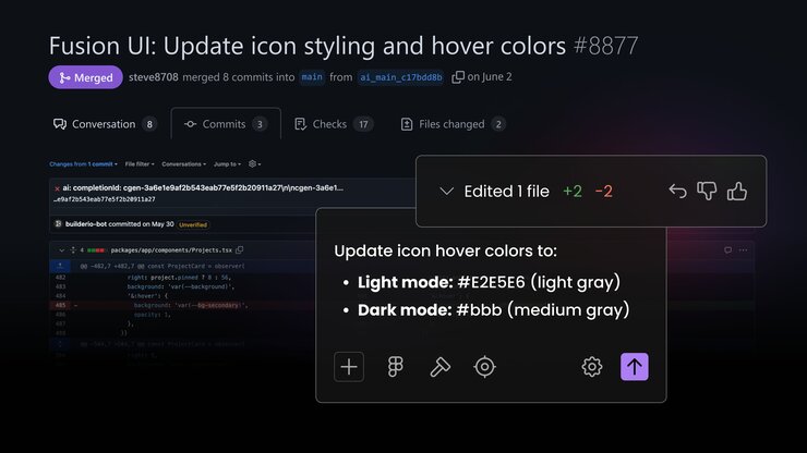 Instead of designers creating mockups that developers manually interpret and code, Fusion bridges this gap with AI that understands both design intent and your codebase structure.