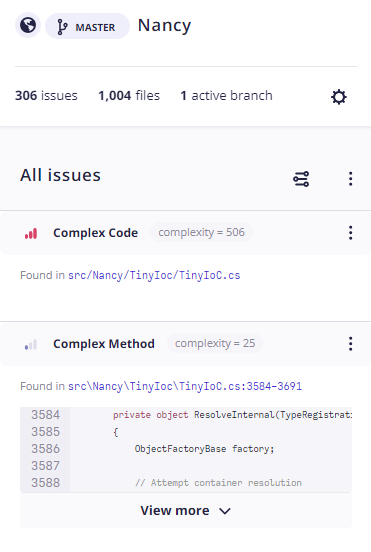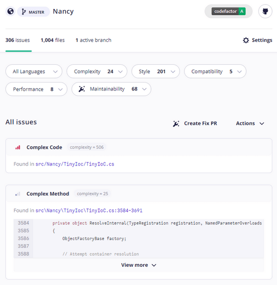 CodeFactor will try to show the most critical issues first based on issue code size, file change frequency and file size so you can start fixing only what's important.