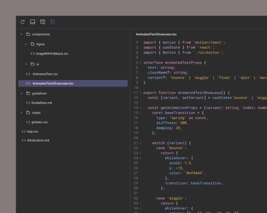 Use the built-in code editor to inspect, tweak, and extend the code that powers your design.