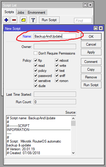 This script allows you to generate daily backups of MikroTik and send them to an email address. You can also choose to enable automatic RouterOS upgrades or receive notifications exclusively for new firmware versions.