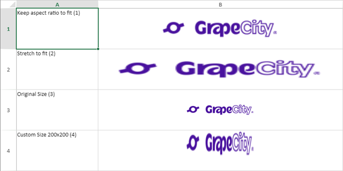 The image sparkline can be used to place an image in a cell. The image can be displayed in different sizes by using display modes of the image sparkline function: