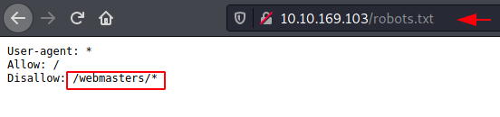 We have an entry inside the robots.txt. It says to disallow /webmasters/. Let’s see what’s inside this directory that the author wants to hide from us.