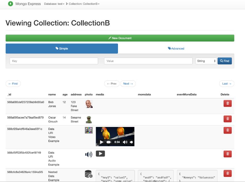 - Single smart-search box accepts: exact-text, (type-casted) value, JSON (with Mongo-operators enabled)
