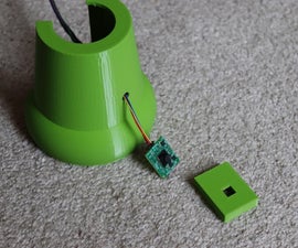 Attach "google eye" to printed eyeball using poster putty. Insert led wires through top of eyeball through center. Attach servo horn to printed eyeball.