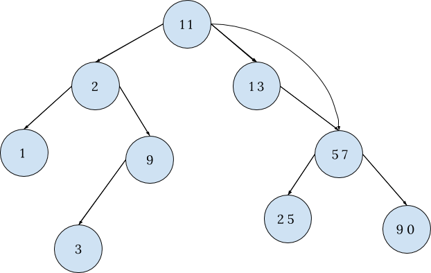 Thus the final order of preorder traversal will be 11, 2, 1, 9, 3, 13, 57, 25, 17, 90.