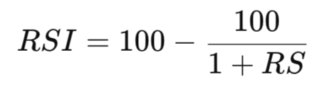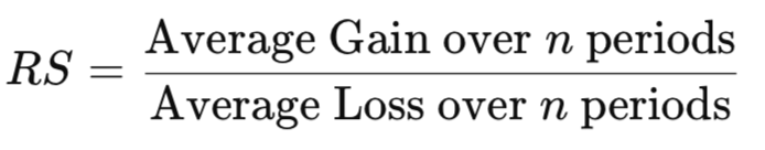 RS, the relative strength, is the ratio of mean upward movements in price to mean downward movements. The averaging period, n, is typically 14.