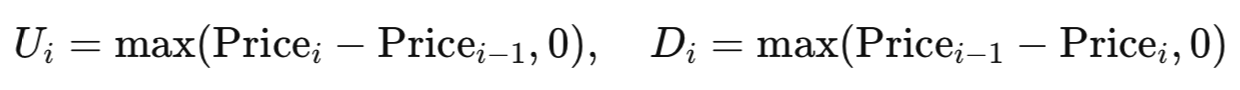The steps in calculating this, begin by getting the upward and downward changes, which we represent as Ui and Di below.
