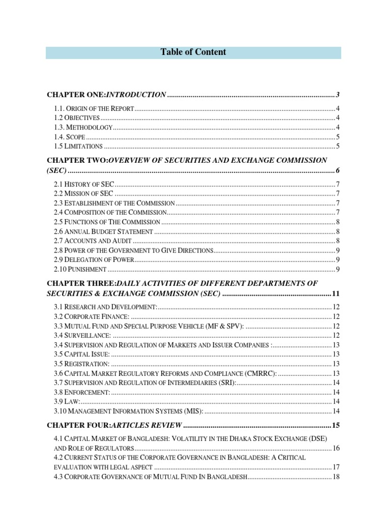 CHAPTER THREE:DAILY ACTIVITIES OF DIFFERENT DEPARTMENTS OF SECURITIES & EXCHANGE COMMISSION (SEC) ........................................................ 11