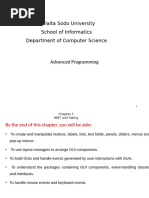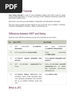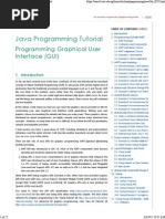 whether a le we want to open really exists. If writing an application for serious purposes, you have to insert these tests. Also, exceptions are not used to cope with errors; for some errors a message will be displayed on the console. When writing a larger application, it is advisable to make use of Javas exception mechanism. The author is grateful for any corrections and suggestions. Please do not hesitate to report typographical errors or to point out parts that appear unclear. Also tell me if you would like to see an example of something specic or if there are any problems concerning the example programs. If the reader is looking for a special component or a feature of a component that is not explained in the book, you should rst consult the Java documentation. Answers to frequently asked questions and program updates will also be placed on the books home page. The authors address is Paul Fischer IMM, Technical University of Denmark Building 322 DK-2800 Kgs. Lyngby Denmark email paf@imm.dtu.dk