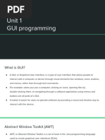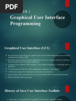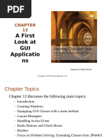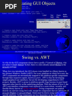 The right of Paul Fischer to be identied as author of this work has been asserted by him in accordance with the Copyright, Designs and Patents Act 1988. All rights reserved. No part of this publication may be reproduced, stored in a retrieval system, or transmitted in any form or by any means, electronic, mechanical, photocopying, recording or otherwise, without either the prior written permission of the publisher or a licence permitting restricted copying in the United Kingdom issued by the Copyright Licensing Agency Ltd, 90 Tottenham Court Road, London W1T 4LP. The programs in this book have been included for their instructional value. They have been tested with care but are not guaranteed for any particular purpose. The publisher does not offer any warranties or representations nor does it accept any liabilities with respect to the programs. All trademarks used herein are the property of their respective owners. The use of any trademark in this text does not vest in the author or publisher any trademark ownership rights in such trademarks, nor does the use of such trademarks imply any afliation with or endorsement of this book by such owners. ISBN 0321 22070 6 British Library Cataloguing-in-Publication Data A catalogue record for this book is available from the British Library Library of Congress Cataloguing-in-Publication Data Fischer, Paul, 1956Introduction to graphical user interfaces with Java Swing / Paul Fischer. p. cm. Includes bibliographical references and index. ISBN 0-321-22070-6 1. Java (Computer program language) 2. Graphical user interfaces (Computer systems) I. Title. QA76.73.J38F58 2005 005.13 3 dc22 2004062293 10 9 8 7 6 5 4 3 2 1 08 07 06 05 Typeset in 10/12pt Caslon and Frutiger by 59 Printed in Great Britain by Henry Ling Ltd, at the Dorset Press, Dorchester, Dorset The publishers policy is to use paper manufactured from sustainable forests.