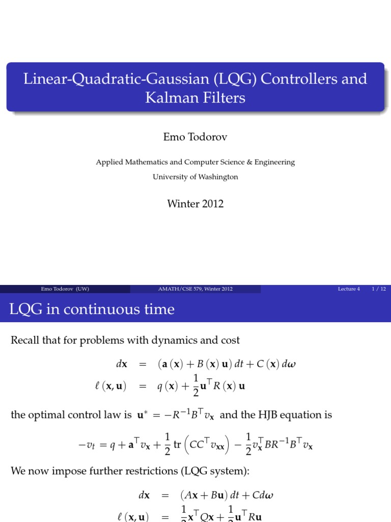 Emo Todorov (UW) AMATH/CSE 579, Winter 2012 Lecture 4 2 / 12