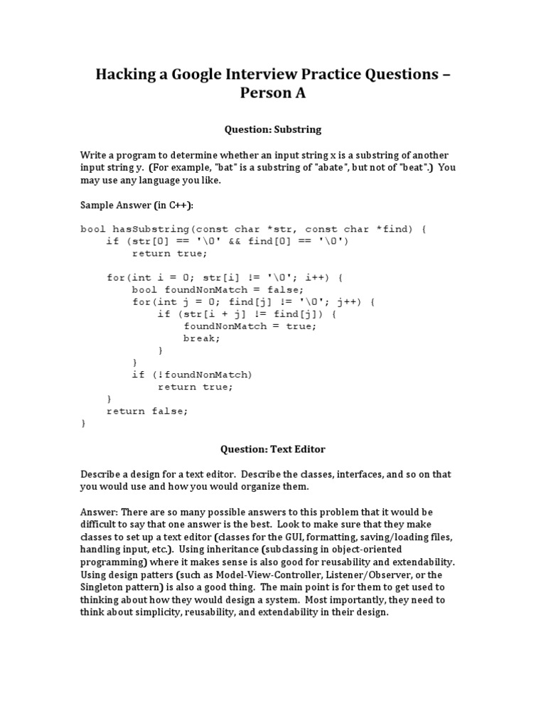 HackingaGoogleInterviewPracticeQuestions PersonA
