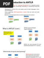 In computer-based language recognition, ANTLR (pronounced Antler), or Another Tool for Language Recognition, is a parser generator that uses LL (*) parsing. ANTLR is the successor to the Purdue Compiler Construction Tool Set (PCCTS), first developed in 1989, and is under active development. Its maintainer is Professor Terence Parr of the University of San Francisco. ANTLR takes as input a grammar that specifies a language and generates as output source code for a recognizer for that language. At the moment, ANTLR supports generating code in the programming languages Ada95, Action Script, C, C#, Java, JavaScript, Objective-C, Perl, Python, and Ruby. A language is specified using a context-free grammar which is expressed using Extended Backus Naur Form EBNF. ANTLR allows generating parsers, lexers, tree parsers, and combined lexer-parsers. Parsers can automatically generate abstract syntax trees which can be further processed with tree parsers. ANTLR provides a single consistent notation for specifying lexers, parsers, and tree parsers. This is in contrast with other parser/lexer generators and adds greatly to the tool's ease of use. By default, ANTLR reads a grammar and generates a recognizer for the language defined by the grammar (i.e. a program that reads an input stream and generates an error if the input stream does not conform to the syntax specified by the grammar). If there are no syntax errors, then the default action is to simply exit without printing any message. In order to do something useful with the language, actions can be attached to grammar elements in the grammar. These actions are written in the programming language in which the recognizer is being generated. When the recognizer is being generated, the actions are embedded in the source code of the recognizer at the appropriate points. Actions can be used to build and check symbol tables and to emit instructions in a target language, in the case of a compiler. As well as lexers and parsers, ANTLR can be used to generate tree parsers. These are recognizers that process abstract syntax trees which can be automatically generated by parsers. These tree parsers are unique to ANTLR and greatly simplify the processing of abstract syntax trees.