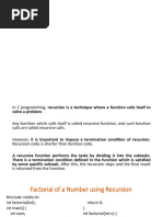 The C programming language supports recursion, i.e., a function to call itself. But while using recursion, programmers need to be careful to define an exit condition from the function, otherwise it will go in infinite loop. Recursive function are very useful to solve many mathematical problems like to calculate factorial of a number, generating Fibonacci series, etc.