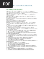 1) Healthcare systems connecting at various terminals to get the information (ASP/ASP NET, SQL server ) 2) Digital parking system (VB NET + Access) 3) News Portal System (ASP NET + SQL server) 4) Preventing Network Data congestion Collapse using Network Border Patrol (Java) ABSTRACT 5) Sending & receiving SMS-through-vb 6) HelpDesk and Fund raising system at the time of emergency like floods, earthquakes (VB/VB NET ,SQL server )Wireless accessing the WAP site (WML, GPRS handset, simulator) 7) Client Monitoring System (Java) 8) Fruit Management System (VB MS ACCESS) 9) Portfolio Management (VB) 10) XML Editor using VB Net Web Based Sudoku 11) SMS Gateway (Java) 12) Data Search Optimization (VB NET/ASP Net Sql Server /Oracle g) 13) RIVA- Real Time Image Viewing and Acquisition Cryptography Optical Computer 14) VOICE MAIL USING Java 15) Cyborg (HTML/FLASH MX / JAVASCRIPT ) 16) Health Information System (ASP Net/ Sql Server ) 17)Hotel Management system 18) CD library management (RFID) 19) Library Management System 20) Student Smart Card Application (VC++, MS-ACCESS) 21) Using your mobile miss call as password (VB, / net) 22) Generic Reporting Tool (Java) 23) E-insurance (JAVA) 24) Online mailing Application (VB Net/ASP NET Ms Access /PLSQL) 25)Examination result according to the classes 26) Motion detector using MATLAB 27) Telephonic Resulting System (VC++,VB)