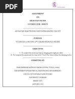 The amplitude response of a Butterworth filter is given by; Vout 1 = 2n Vin 1 + (f/fc ) Where n is the order of the filter. Frequency Response of a second order Butterworth low pass filter The arrangement shown in Figure 24 can be used as second order Butterworth filter with cut-off frequency Fc = 1 2RC