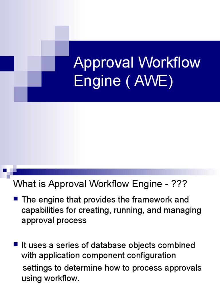 The Approval Workflow Engine (AWE) is a