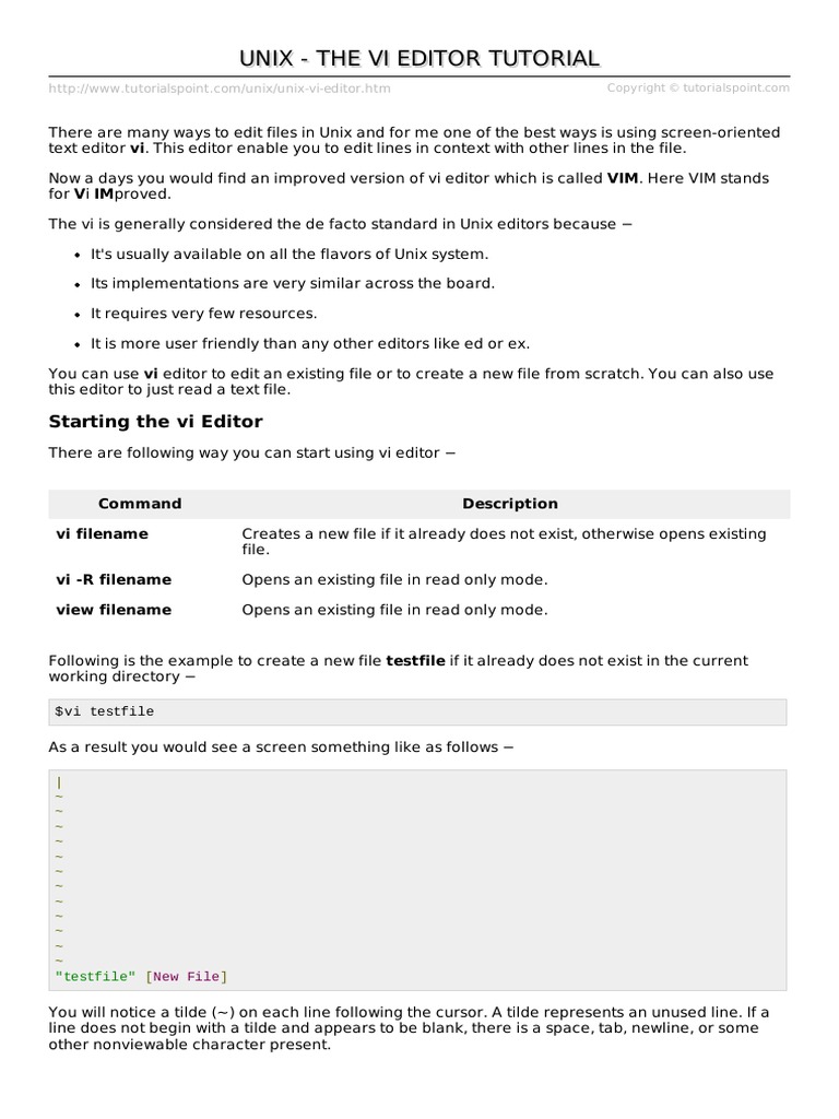 http://www.tutorialspoint.com/unix/unix-vi-editor.htm