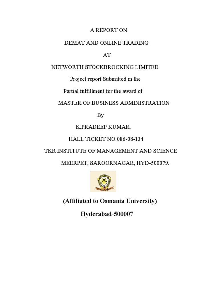 with NSE, BSE & MCX-SX. It is Depository participants with Central Depository